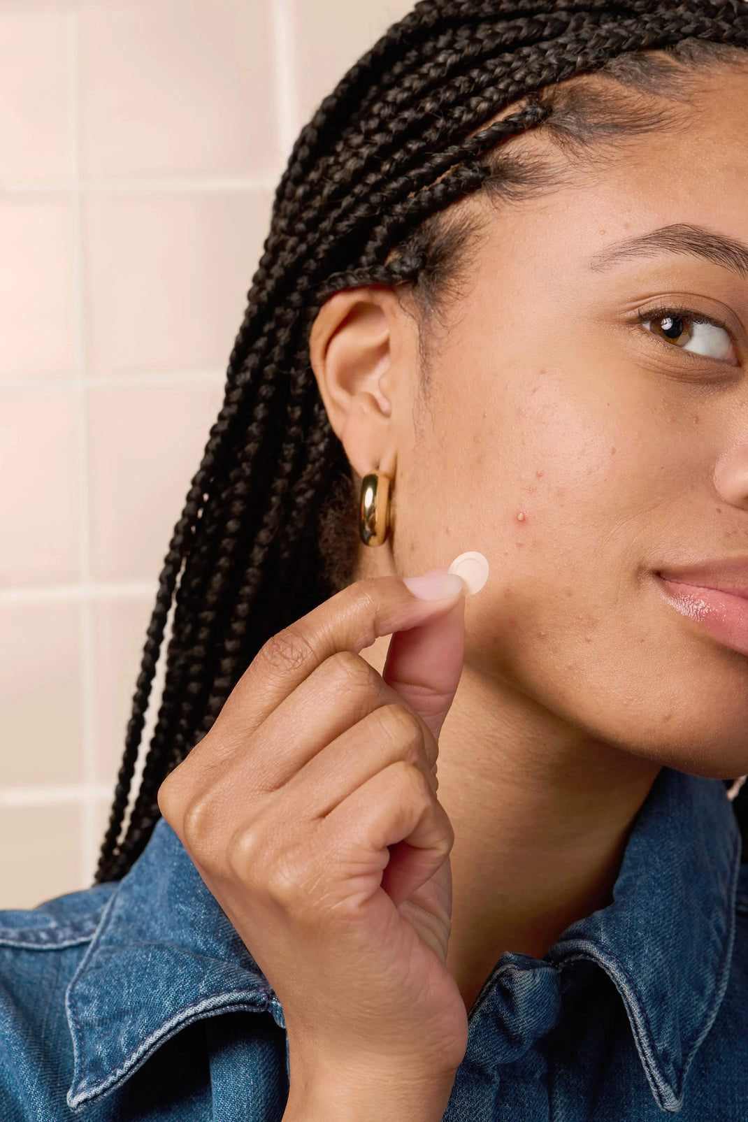 Woken up to a juicy pimple? YIKES! Don't let it slow you down. Tackle it with MIGHTY PATCH ™ Invisible+. Made from medical-grade hydrocolloid, Invisible+ absorbs pimple gunk during the day and helps protect from picking, popping and touching. Our thinnest ever invisible MIGHTY PATCH ™ blends into your skin and is so comfortable to wear, you’ll forget it’s even there!